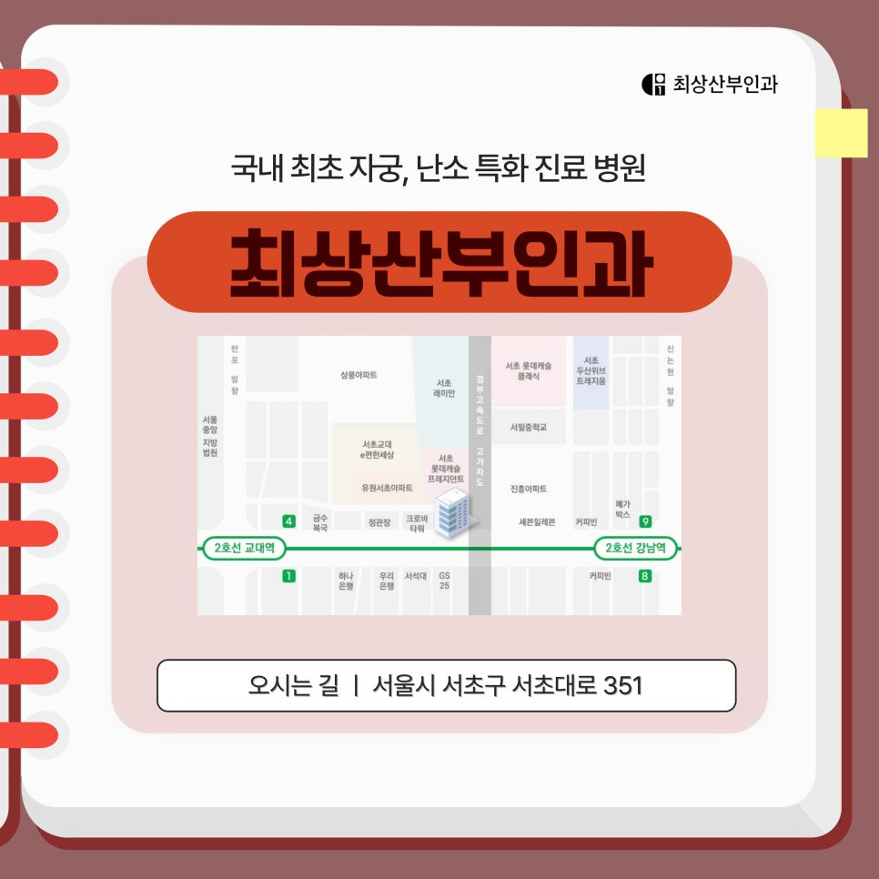 서초산부인과 찾으실때 떠올려주시는 저희 최상산부인과에서는 자궁난소 보존 센터를 보존하고 있으며, 자궁경을 포함한 3대 비수술치료를 우선 치료하고 있습니다.