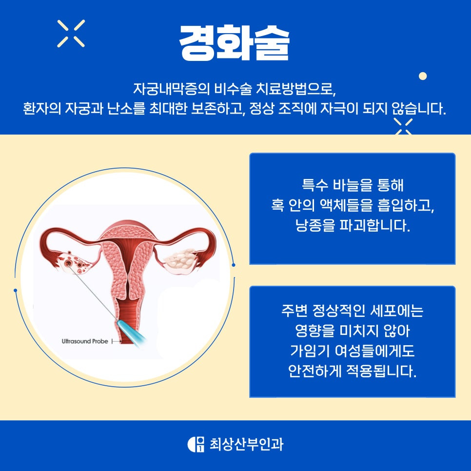 수술처럼 조직을 절제하거나 절개하지 않고, 초음파 유도하에 피부를 절개하지 않고 시술할 수 있기 때문에 난소 조직을 최대한 건드리지 않고 치료할 수 있는 장점이 있어요. 그래서 특히 임신을 계획 중인 분들이나 난소 기능이 이미 많이 약해진 분들에게 좋은 대안으로 소개되고 있어요.