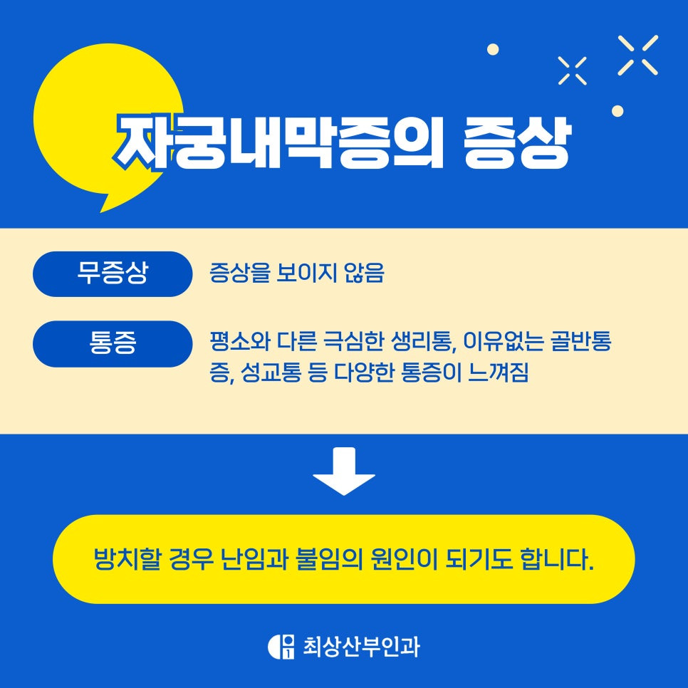 자궁내막증은 조기에만 잘 발견하면 비교적 다양한 치료 방법 중 난소를 최대한 보존하면서 접근하는 치료가 가능한 질환이에요. 최상산부인과에서도 개인별 상태와 계획에 맞춘 접근을 통해 가임력 유지와 통증 개선이라는 두 가지 목표를 동시에 잡을 수 있도록 앞으로도 최선을 다하겠습니다.