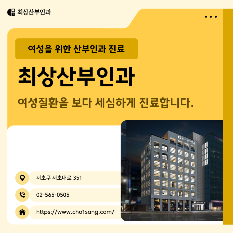 논현동에서 산부인과를 찾고 있다면 다양한 여성 질환을 보다 세심하게 진료하기 위해 끊임없이 노력하고 있는 최상산부인과를 내원하여 상담받아보시길 바랍니다.