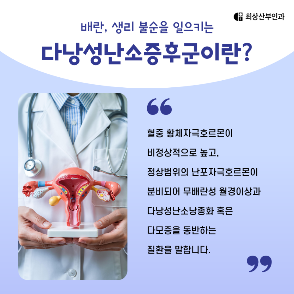 이런 이야기를 들어보셨거나, 혹은 직접 겪고 계시다면 ‘다낭성난소증후군(PCOS)’에 대해 진지하게 살펴보실 필요가 있습니다.
