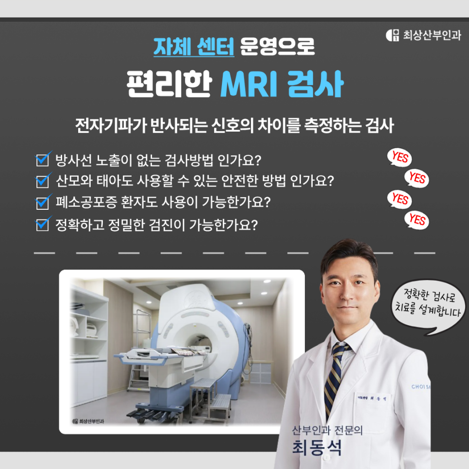 최상산부인과에서는 자궁근종의 정확한 진단을 위해 질식초음파, 자궁내시경, MRI 검사 등 다양한 검진 방법을 활용합니다. 근종의 크기·위치·성질을 정밀하게 파악해, 환자의 연령, 출산 계획, 증상 정도를 종합적으로 고려한 맞춤 치료 계획을 수립하기 위함이죠.
