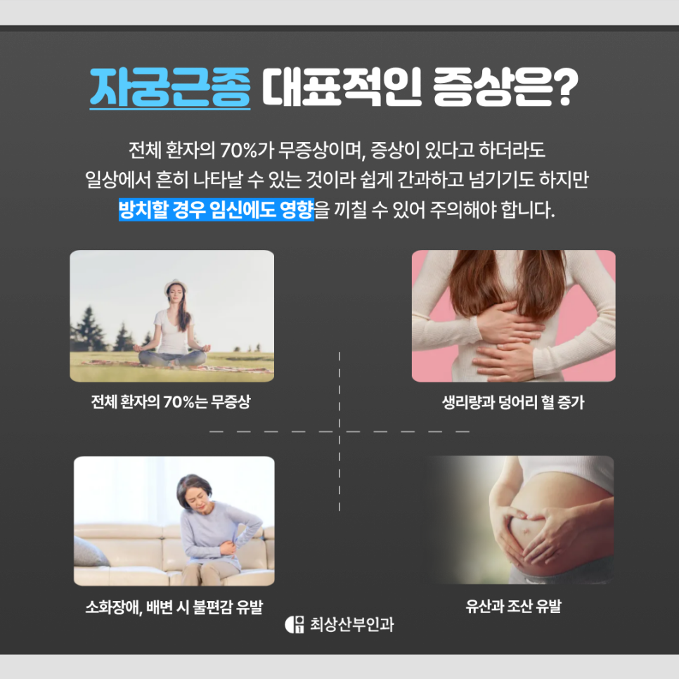 일상 속에서 생리양이 많아지거나, 아랫배에 묵직한 통증이 반복될 때 우리는 종종 “컨디션이 안 좋아서 그렇겠지” 하고 넘어가곤 합니다. 하지만 이런 증상이 자궁근종의 신호일 수도 있다는 점, 알고 계시나요?