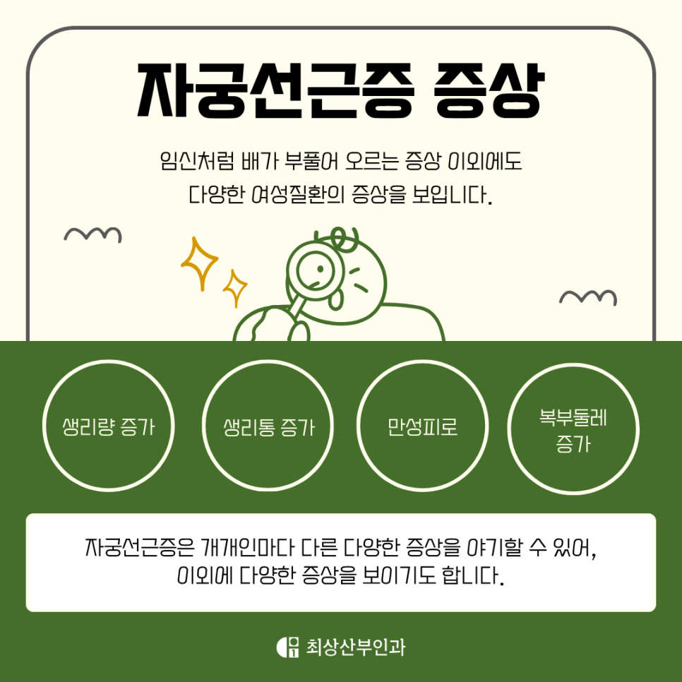 오늘은 자궁과 난소 보존치료를 우선 시행하는 저희 최상산부인과와 함께 오른쪽 아랫배 묵직 통증의 원인인 자궁선근증의 증상, 진단, 그리고 치료 방법을 자세히 알아보려고 해요.