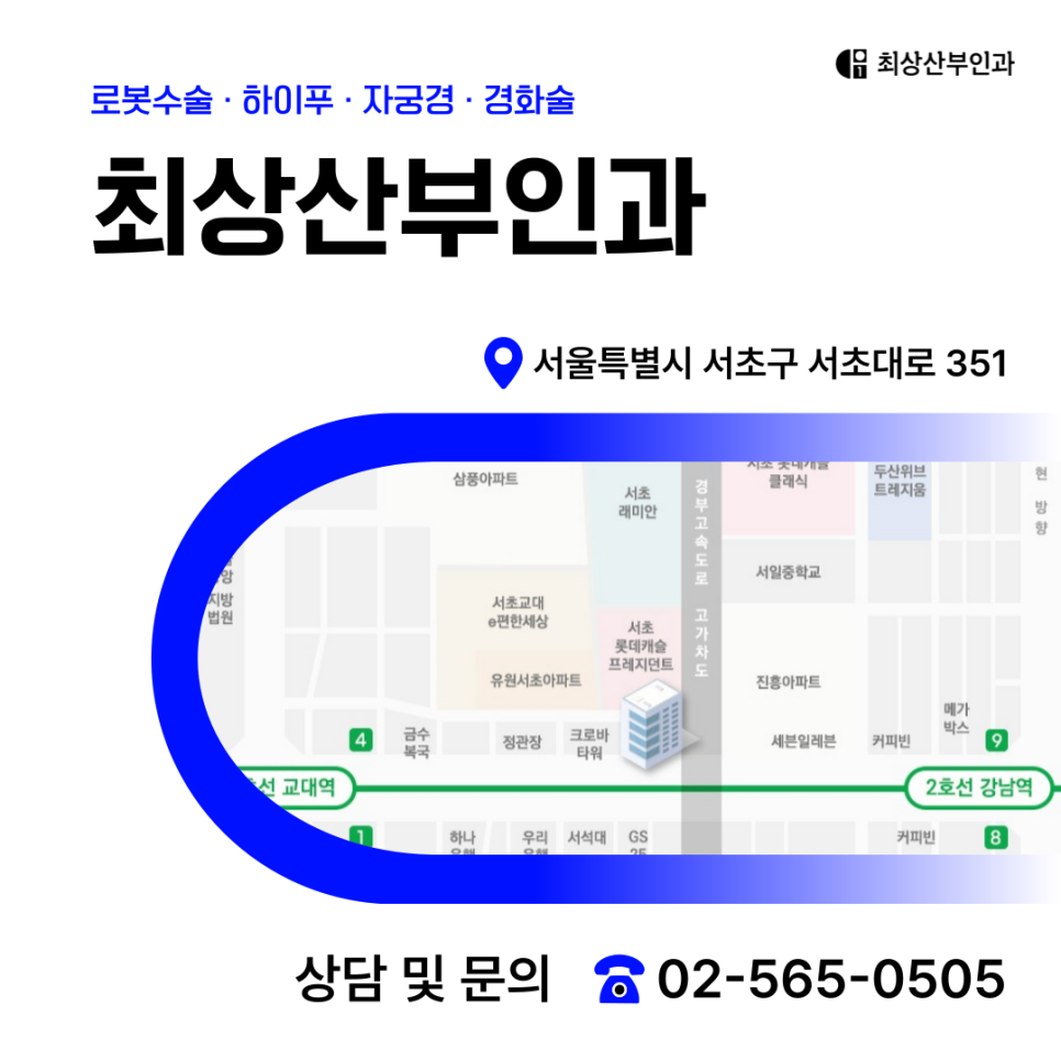 피부 절개가 없기 때문에 출혈이나 감염 위험이 거의 없으며, 대부분의 환자가 당일 귀가가 가능하죠. 강남산부인과를 대표하는 저희 최상산부인과에서는 고해상도 영상 유도 하이푸 장비를 사용해 정상 자궁조직은 최대한 보호하면서, 병변만 정확히 치료할 수 있도록 실시간 모니터링 하에 안전하게 시술이 이루어지고 있답니다.