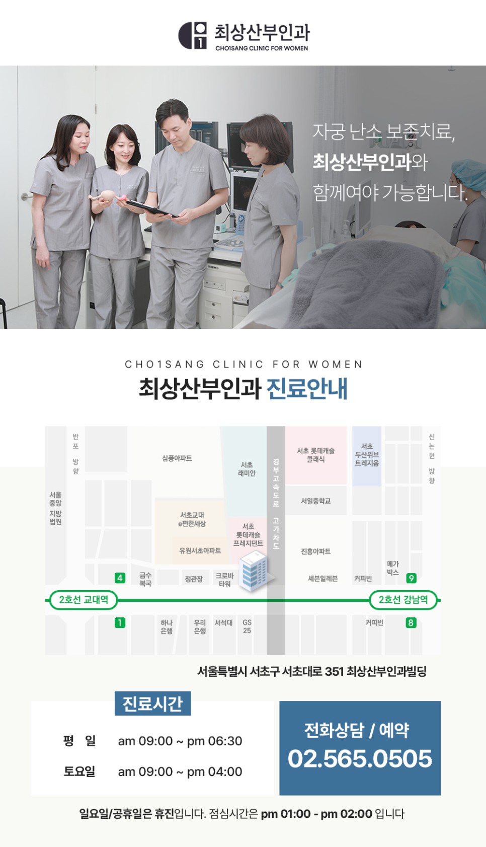 안녕하세요, 서초동산부인과 최상산부인과입니다.