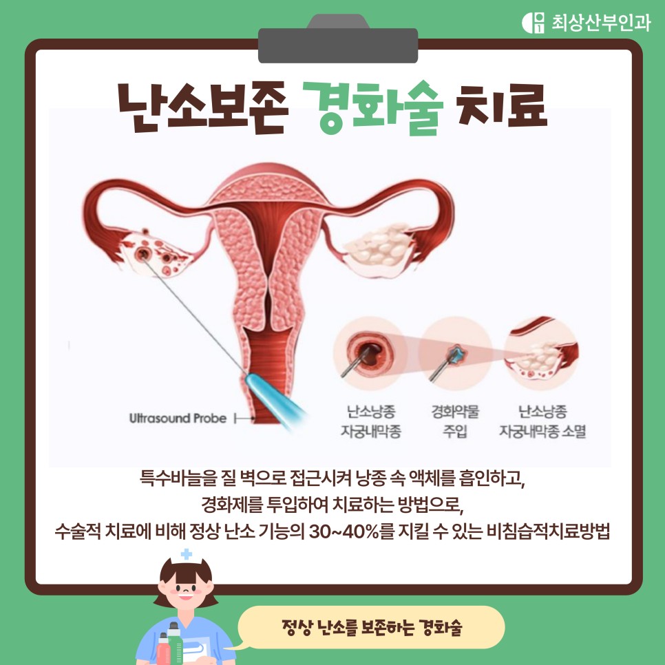 | 강남여의사산부인과 난소낭종 수술 없이 치료하는 경화술 (0) | 2024.04.23 |