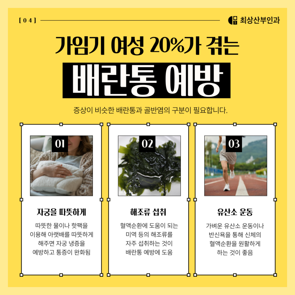 배란통이 강하게 지속된다는 것은 자궁이나 난소의 건강과 기능이 약해져 있다는 것 혹은 염증이 발생했다는 것을 의미했었어요. 골반 대 혈액순환이 원활하게 이루어지지 않거나, 몸이 차가워 어혈 등의 노폐물이 쌓이는 경우 이렇게 기능이나 건강이 약해지기도 하였었어요. 이러한 증상이 지속된다면 결국 자궁과 난소의 기능이 심각하게 악화되기도 하고, 자궁 질환이나 생리불순 등으로 이어질 수 있어 주의가 필요했었어요.