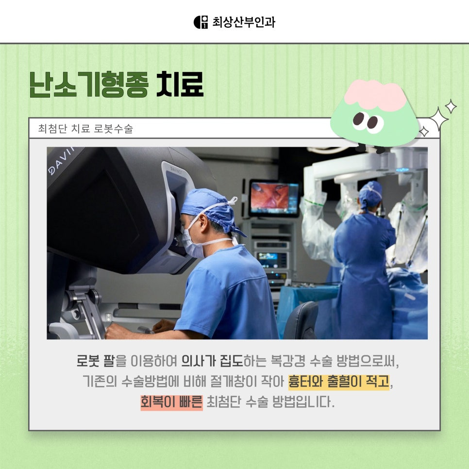 난소절제술, 난종절제술, 로봇수술이 있는데